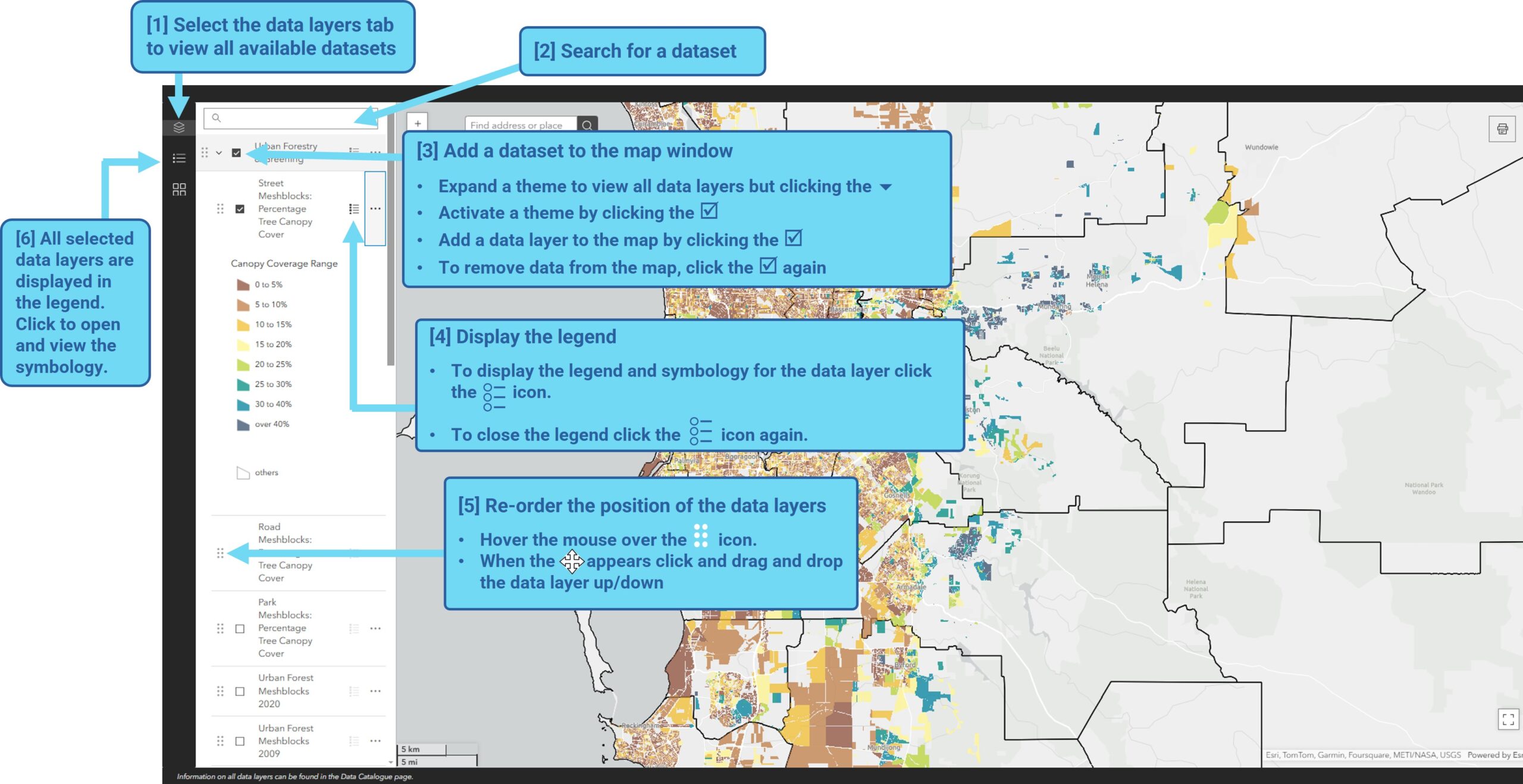 The following guide explains how to search for and add data layers to the map portal.